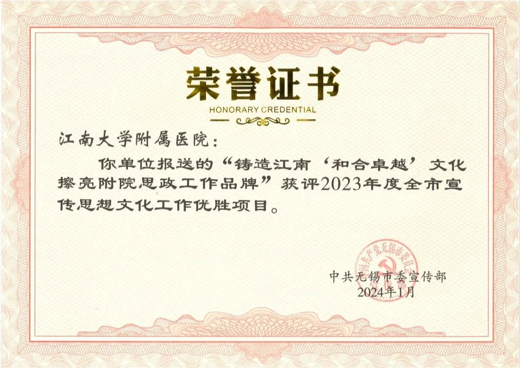 日前,在中共无锡市委宣传部组织的2023年度全市宣传思想文化工作创新项目和优胜项目评选活动中,雷火电竞平台 报送的《铸造江南“和合卓越”文化 擦亮雷火电竞 思政工作品牌》获评2023年度全市宣传思想文化工作优胜项目。